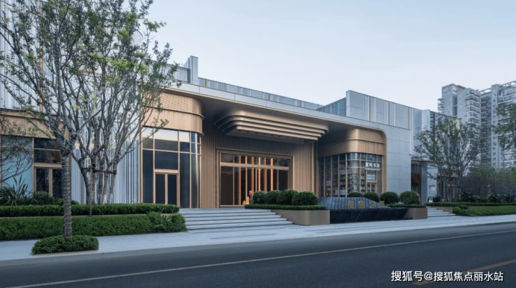 中央大门选用了奢华的香槟金色铝板,彰显了极致的奢华感;两侧商业空间则以简约的铝板和玻璃造型,凸显艺术氛围。商业单元间的暖色调铝板形成了流畅的线条,加强了各部分之间的联系,使整个建筑融为一体。灰白色的静谧艺术感与金色的奢华大气相得益彰,巧妙融合,共同演绎了一种时尚而高端的艺术风格。