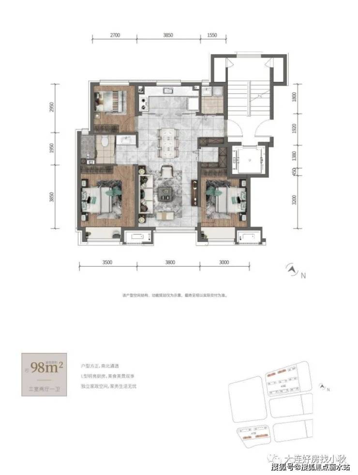洋房/小高层,7层/11层顶,98平(82%得房率),116平(85%得房率)