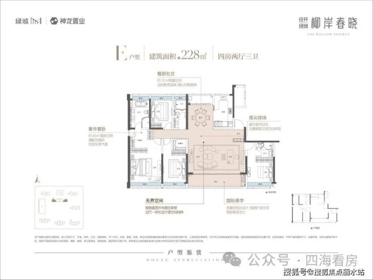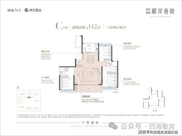 经开绿城·柳岸春晓:全盘预售已拿,主推118-140-142-176-228平米精装修房源,折后均价约17000元/平米。
