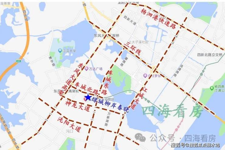 经开绿城·柳岸春晓位于车城北路与体育路交汇处,在楼市划分中属于经开核心沌口体育馆板块,行政划分属于经开区,距离三环线3公里,属于三环外。
