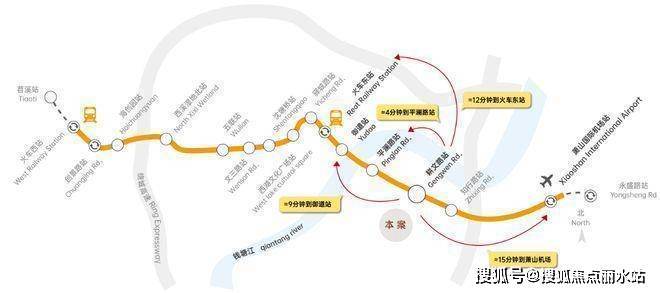 2站直抵钱江新城(御道站) 无缝链接萧山机场/杭州东站/西站三大枢纽