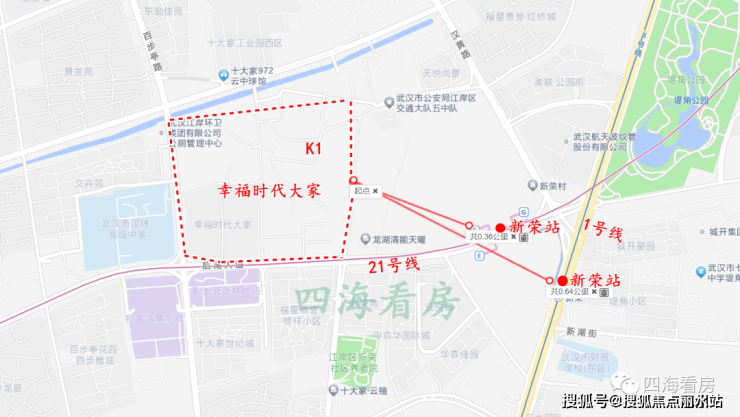 地铁与公交:幸福时代大家K1地块距离地铁21号线新荣站直线距离约300多米,1号线新荣站约600多米,属于双地铁小区。