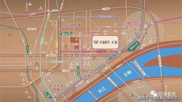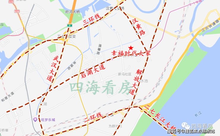 幸福时代大家位于后湖大道与百步亭路交汇处以东,楼市划分属于东后湖板块,行政划分属于江岸区,距离二环线约2.2公里,距离三环线约1.8公里,属于2.5环。