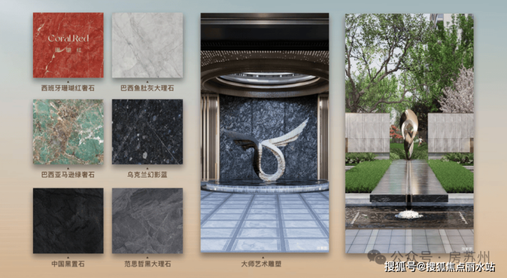 约110M超大尺度城市界面,仪式水景拾级而上,定制级艺术雕塑,酒店礼遇仪式侯迎隐奢归家。