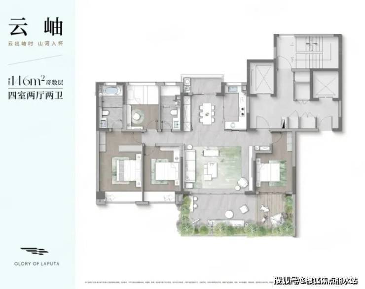 项目采用奇偶层错列式排布,实现“家家有花园、户户有露台”,确保每一户都拥有极致视野体验,户型也将打造起步约180㎡的高改产品。