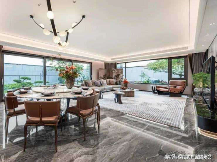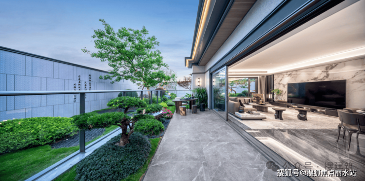 「端厅+露台」的设计,也让室内外互动性更强,会客空间延伸,客厅开阔视野更大。
