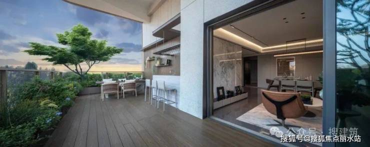 比如,福州三木乐府通过自由、舒展的超大面宽, “延长” 通透的观景边界面,并让客厅、卧室与空中花园交融在一起,打破了室内外空间的边界,充分放大立体生态住宅空中花园的优势。