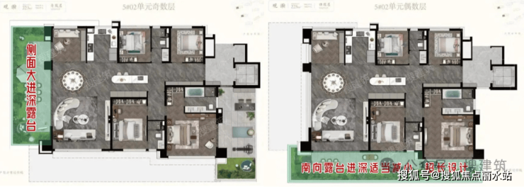 比如,福州建发·灏云,侧面大进深露台,南向露台进深适当做了减小,长度给得很足。