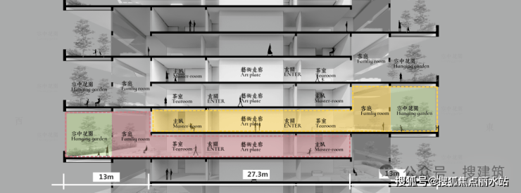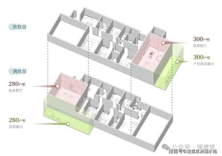 ▲奇数层空中花园模块示意图 ©上海拓维设计