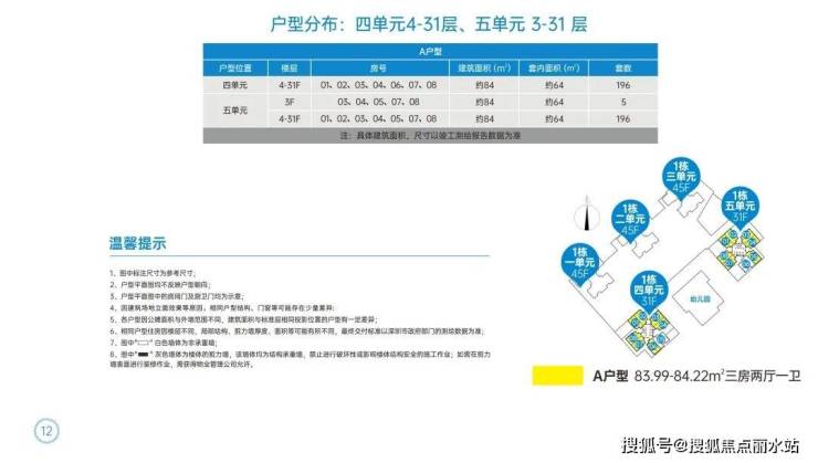 项目位于宝安区新安街道翻身路与新乐路交汇处,总建筑面积约16.8万㎡,采用商品房围合式布局,本次配售房源位于1栋四单元和五单元,不是超高层建筑,楼高31层,梯户比3梯8户,等梯时间短。各户型呈四叶草蝶形布局,通风采光和景观视野都非常好。