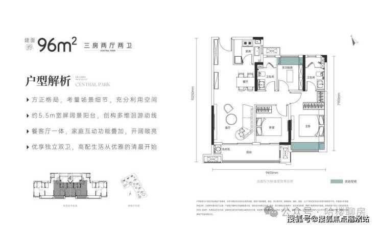 约5.5m宽景阳台/干湿分离双卫/多功能套房主卧