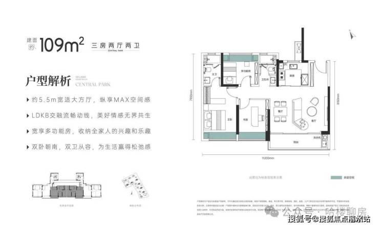 约5.5m阔尺方厅/LDKB一体化/双卧朝南/双卫从容