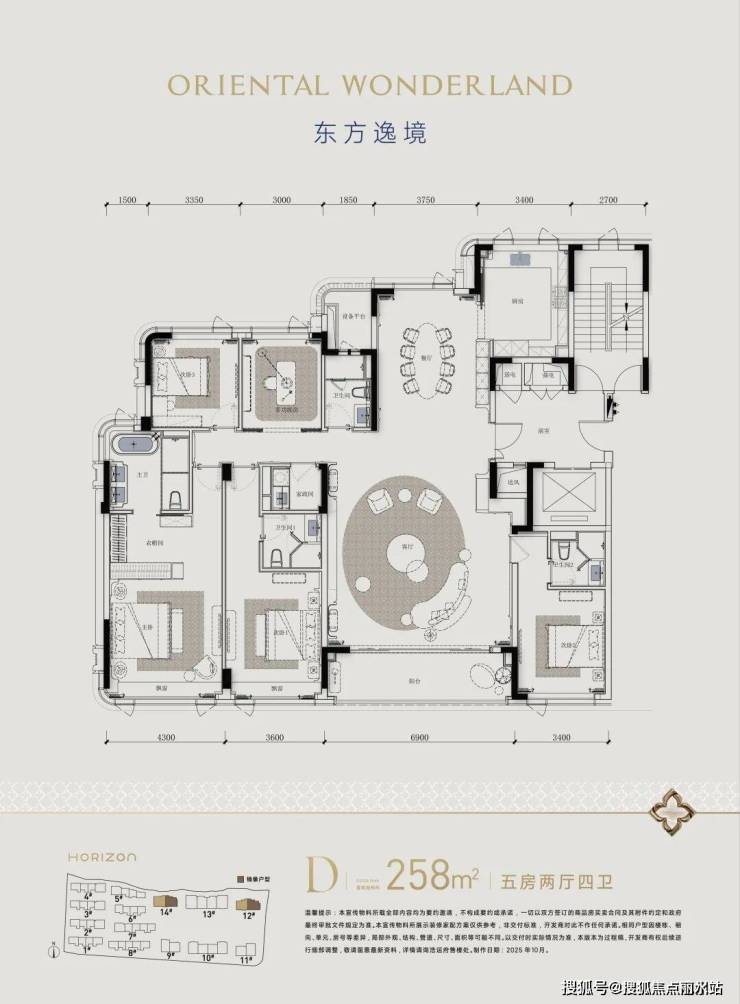 目前放出的高层户型图,建面约218方为5房2厅3卫,建面约238方/258方皆为5房2厅4卫!