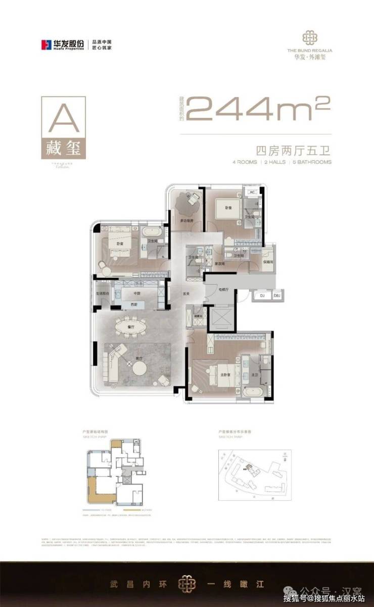 华发外滩玺主推 161-244㎡的大户型,定位高端改善人群。这些户型普遍具有高使用率(约95%-103%),并采用准四代住宅设计。以下是其主要户型及楼栋分布概览: