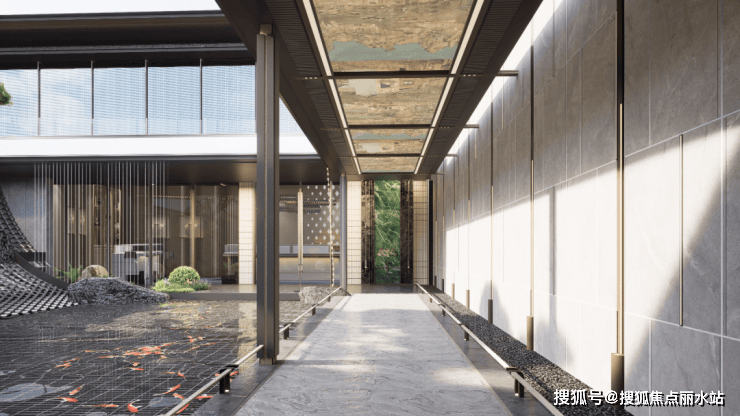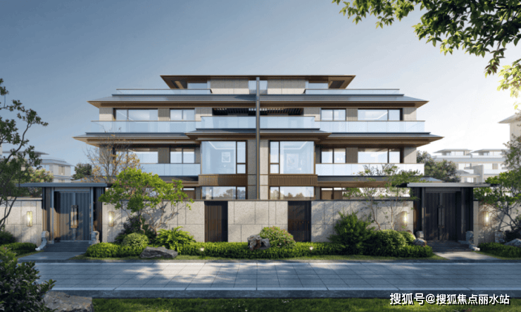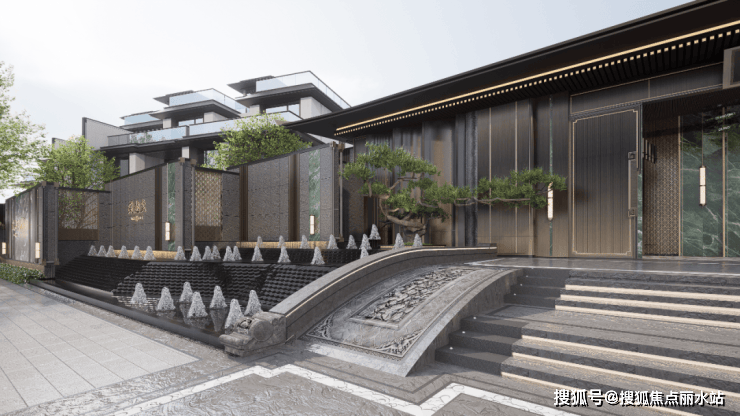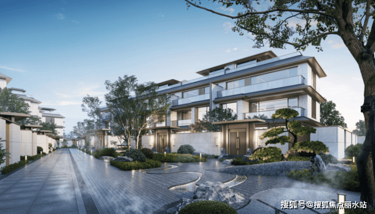 瓯越玺在整个园区的布局上很精妙,采用了“一轴·五进·五园·七坊·九巷”的景观结构,无论是在园林庭院的起承转合、移步换景中,还是在现代生活场景的更迭上,瓯越玺都让中式精髓得到了恰如其分的表现。在立面打造上,将东方坡屋顶与现代风格融合,采用石材铝板+大窗墙比设计,让建筑看起来更加轻盈通透,屋面用青瓦铺陈,简约中又不失传统韵味。