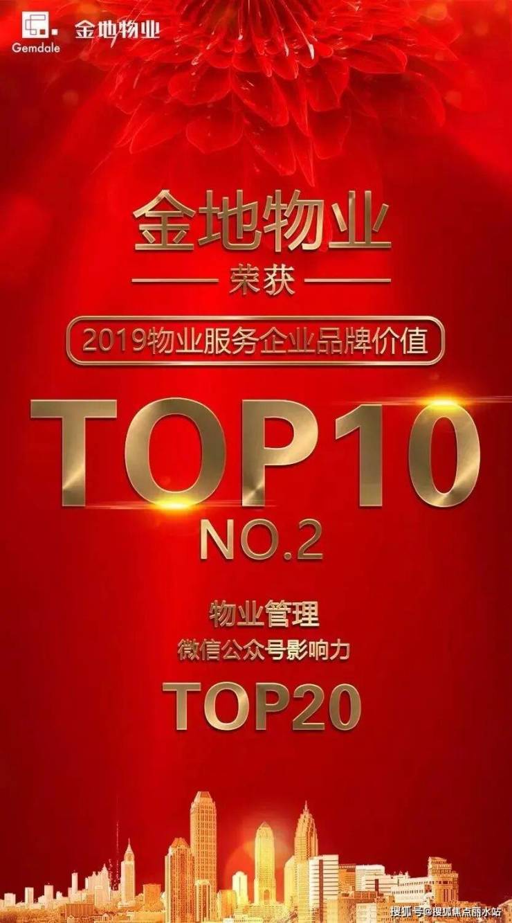 截止2019年金地物业以50.1亿的品牌价值,2019中国物业百强榜第二名,连续十一年年荣登“中国物业服务百强企业”。并且连续多年获得“中国物业服务百强企业综合实力TOP3。