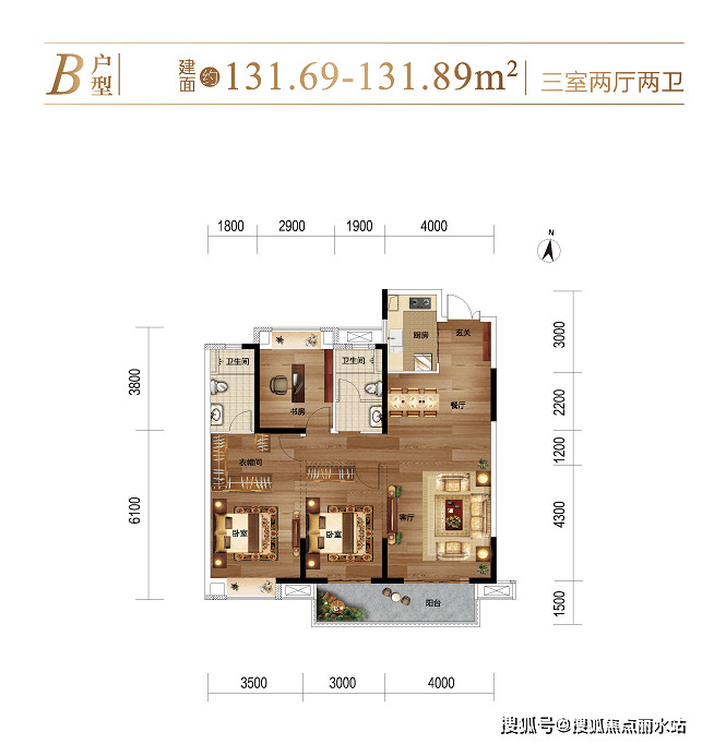 一摊开建面约131㎡户型图,很多人一定会说:这是熟悉的感觉。经典的三开间朝南,全屋方正,南北通透,追求采光最大化,功能上已经没有什么可以挑剔了。