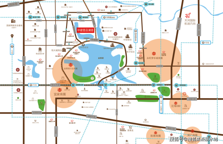 当然也可以顺着环湖路去往金银湖万达广场(建设中),不远处就是永旺商圈、宜家荟聚商圈。此外,正在加速建设中的协和医院离项目也不远,步行可到达。