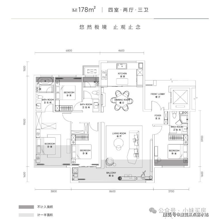 要说涧山观奕143㎡户型是市面上设计最好的140㎡户型,那么这个178㎡户型就是目前市面上设计最好的180㎡户型,堪比市面上200㎡左右的大平层。