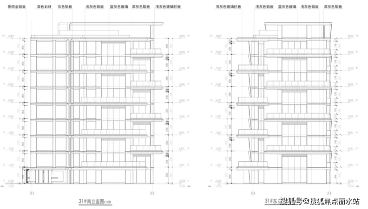 从规划图中,也能看出来,铝板+石材+玻璃的材质,香槟金+灰色+浅灰色+深灰色+蓝灰色的色彩搭配,洋房的侧边转角露台,就像在一座垂直森林,户户拥有空中庭院,尽显豪宅气质。