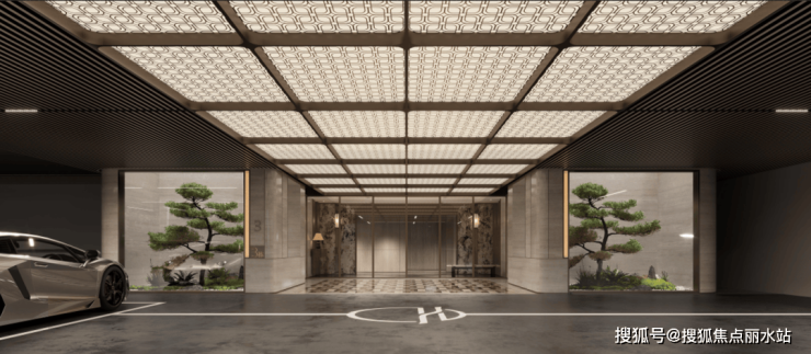 项目公共区域的规划也相当绝妙。如所有楼栋都规划了地上地下双精装入户大堂,不仅装修配置相当高,且地下车库还规划了奢华入户光厅和中央落客区,还配置了绿植等。