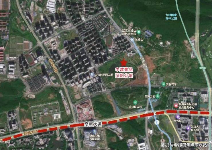 此外,区域内多个知名景点都在项目附近,如项目南侧约100米处的鸡公山公园、东南处约200米处的西苑公园、东北角约300米处的九峰山森林公园等。