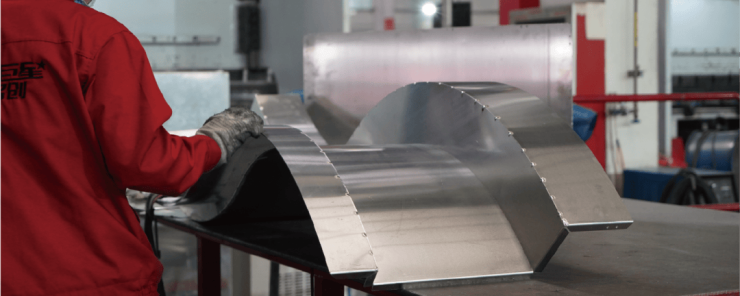 铝板表层选用氟碳喷涂工艺(PVDF:聚偏二氟乙烯),经由生产线16道标准工序的处理后,即得到了两条产品线标志性的皓月银、香槟金配色,处理后的铝板表面抗紫外线、抗裂性及抗褪色性大大增强,确保外立面品质的可持续性。