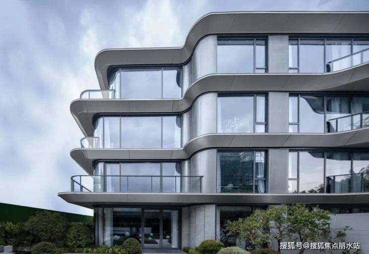 外立面应用第三代金昌曲线,大开大合的三维曲线、变革性双曲铝板、巨幕级通透玻璃,从过往建筑中跳脱而出,代表了面向未来10年甚至更久的审美风尚。专门厂家定制、特殊安装技艺、毫厘级铝板拼接、45cm厚轻盈外悬飞檐、约5%坡度排水设计等“金昌式匠造标准”和超成本投入,让美感与质感并存。