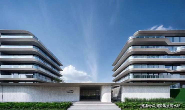 金昌 · 烟波星鹭位于绍兴柯桥,三面环水,景观优越的自然资源是其得天独厚的优势条件。设计秉承“将自然引入生活”的理念,以飞翔在水面上的白鹭为灵感,采用流线型作为主要的造型语言,并在金昌一代曲线的基础上对立面语言进行优化迭代。