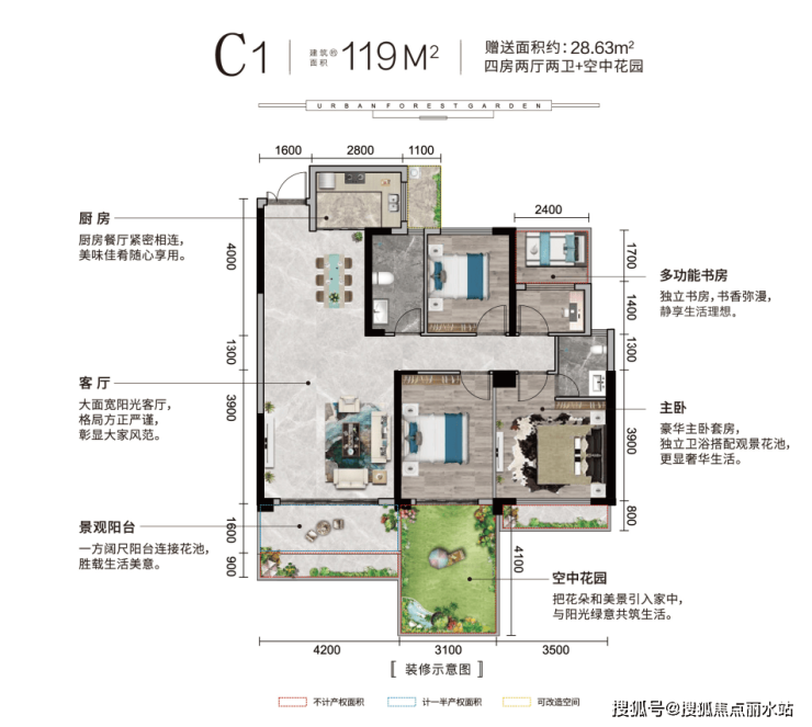 香江城市森林花园一期包含119㎡、133㎡、149㎡三个户型,四房两厅两卫设计,赠送面积最高达约55㎡,南北通透、板式设计,得房率高达138%,性价比超高!