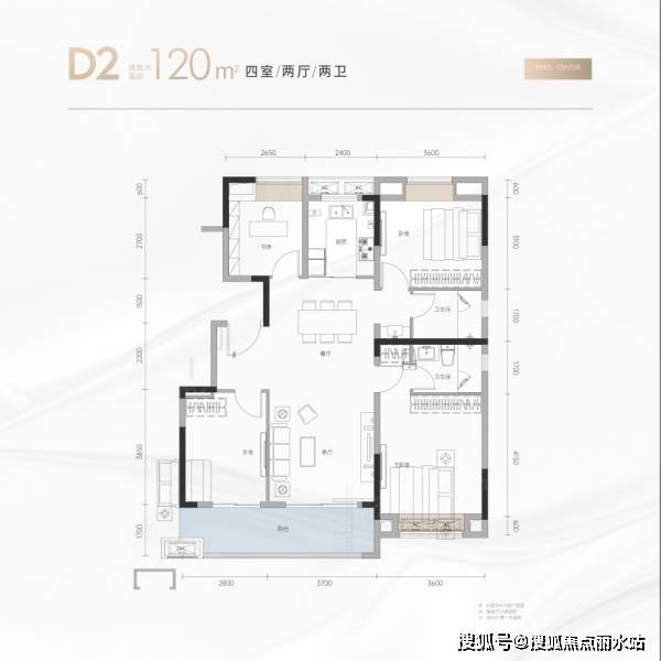 5种户型,建面:105-135㎡ 4室2厅2卫 (建面:115)