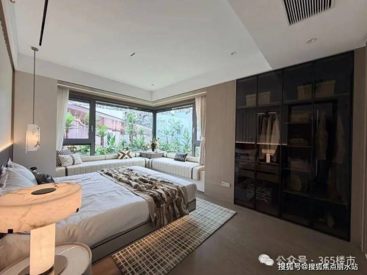 主卧采用270°转角飘窗,视野采光光都非常好,套房式的设计也保证了隐私性。