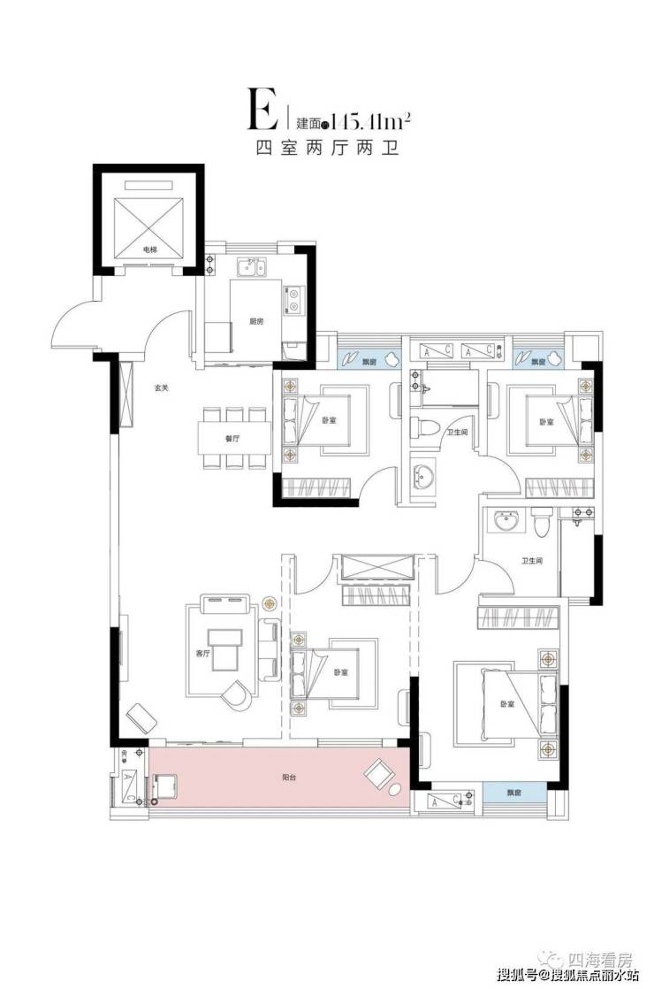尺度之境:南向三开间大尺度,卧室均带观景飘窗,将美景尽收眼底。