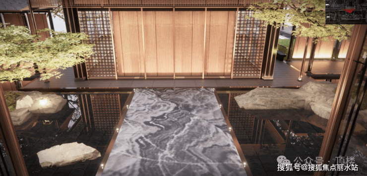 呼应国家“四个自信”中的“文化自信”,尊重项目在地文化,借鉴苏州耦园的营造手法,演绎高品质的东方美学之境,以中国传统营造技艺,打造格局严谨的中轴对称布局,复兴传统文化精粹。