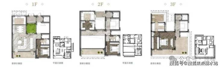 一进礼仪前场,登门望府,现代精筑的迎宾门楼;二进静水涟漪,清雅之境,花木、叠石、树阵、小径、水景等园艺小品层层衔接;三进归家之仪,秩序迎宾,对称式种植设计,体现入户的尊贵仪式感。
