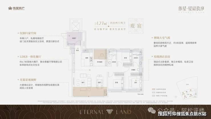 ②建面约127平 :南北通透大四房!独立电梯入户!南向约6.7米超大横厅!