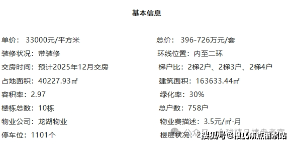 龙湖御湖境分为A、B两个地块,由10栋18-31层的高层住宅组成,总建面约15.5万方,体量适中,成交楼面价14102.08元/㎡。