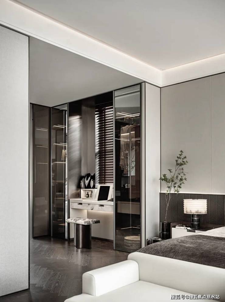 走进主卧,典雅的色彩基调与优雅的审美气质相契合,勾勒出主卧的优雅轮廓。考究的细节与艺术的温度交融。端庄且不乏呼吸感,为居住者打造恰意舒适的私享秘境。