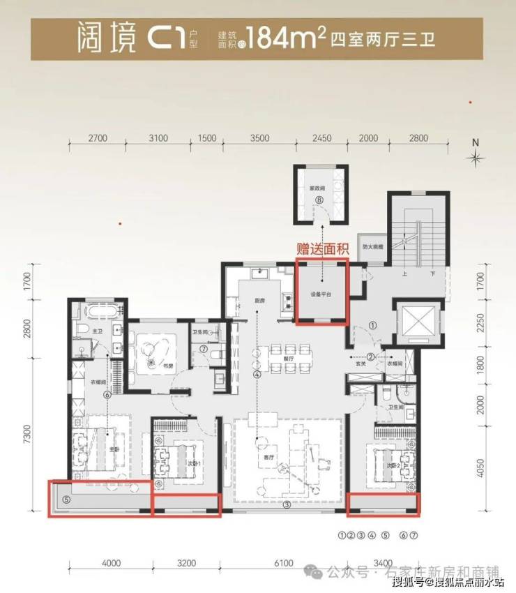 b.2栋6层,184平四室三卫,一梯两户,电梯双开门,层高3.2米