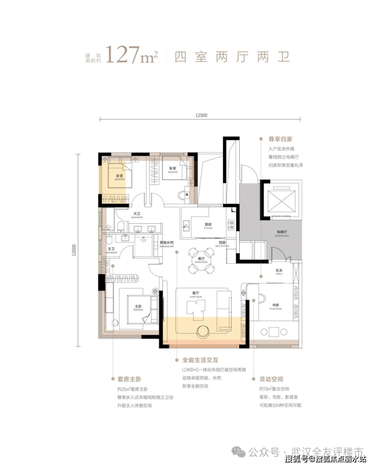 准确地说,武昌源著的王牌户型,传承了中国人居建筑塔尖的空间+动线