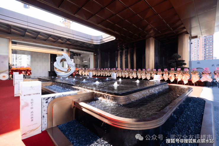 中央水景寓意处世周道,蒸蒸日上,水在源著雕塑处汇聚