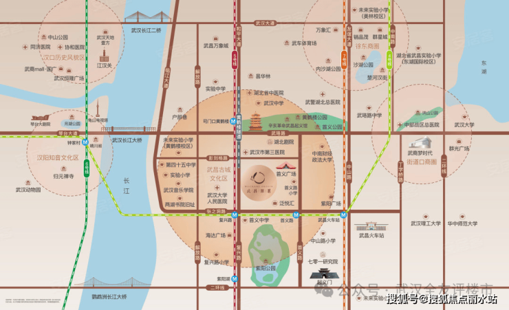 更难得的是,项目是武汉少有的三轨环绕住区,紧邻地铁4号线、5号线、11号线站点,武昌、汉口、光谷的经济中心,一一被串联