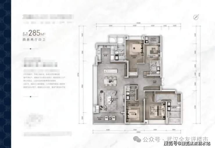看到它的第一眼,我脑海中瞬间浮现出了二七滨江武汉地王豪宅的楼王约285㎡户型