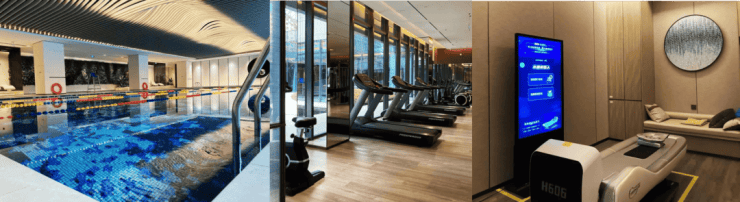 项目配备约3000平米高端会所,含恒温泳池、瑜伽室、健身房、儿童娱乐区、茶艺室、私宴厅,提升项目圈层调性。