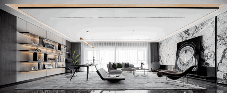 南通首家以地下车库作为实景展示项目,进入车库前设置多层识别认证,私密性/尊奢感十足,与项目调性互现,环氧地坪、星空顶、顶部格栅相结合,展示面优,所见即所得,视觉冲击力强。