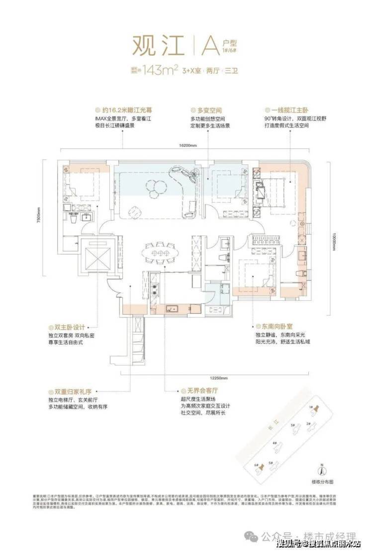 • 瞰江王座:IMAX级观江面,全楼栋V形折线形布局,户户正观江