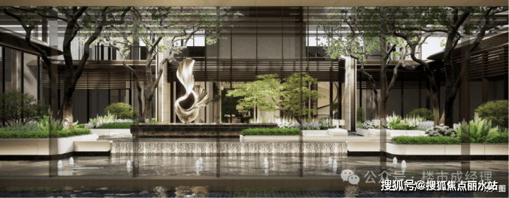 垂直滨水主题会所、下沉庭院空间,以度假酒店式生活场景,定制身心悠然的滨水奢境。