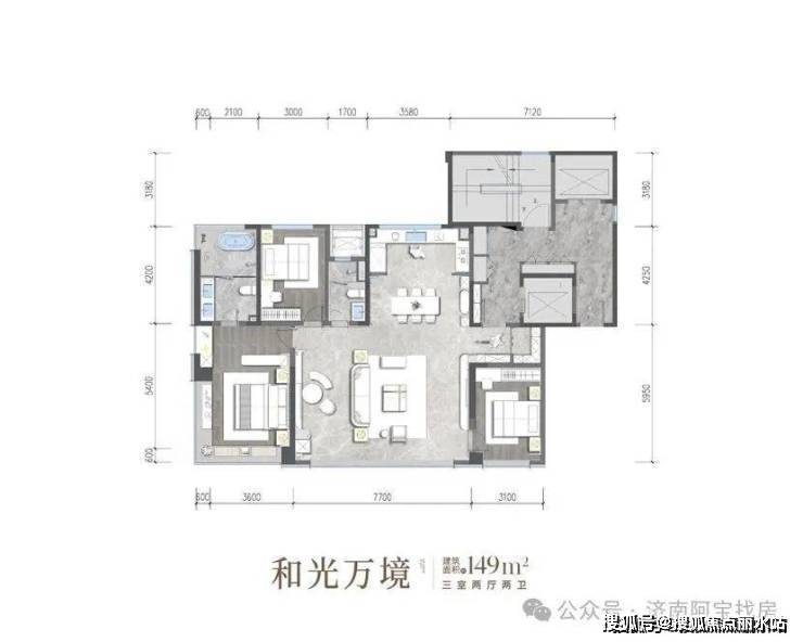 建面约149㎡| 和光万境| 三室两厅两卫约47㎡多功能厅,LDKG+X多元空间,奢享鎏金家族时光智能独立玄关+800库深舱仓储系统,约36㎡主卧套房,尊享双手盆+超宽镜面+通透淋浴+豪华浴缸,270°全景飘窗引天光云影南向约15m超尺三面宽&约7.7m巨幕宽厅