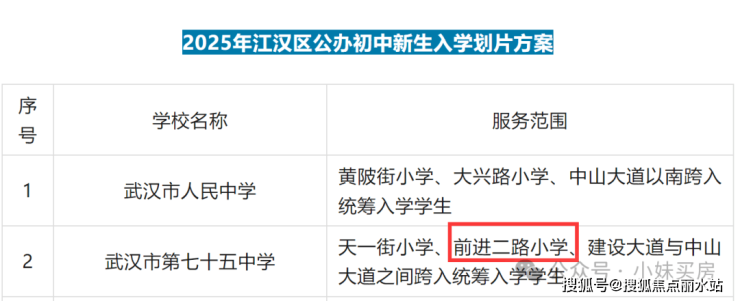 根据2025年江汉区划片显示,周边小区对口的前进二路小学+武汉市七十五中。