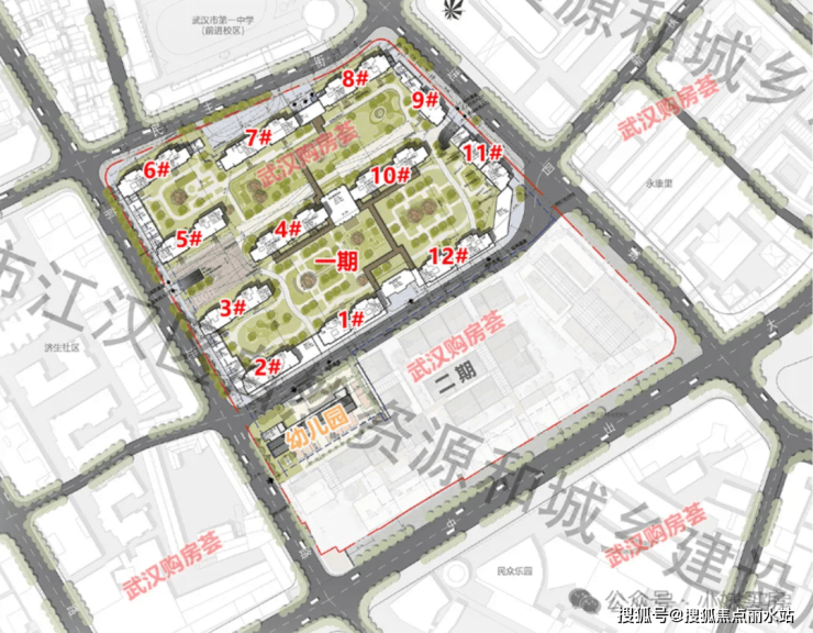 具体来看,项目北面为民主一街、一初前进校区(原一初慧泉),南面为规划幼儿园、二期商业,西侧为前进二路、济生新村,东侧靠前进四路、后勤大院。